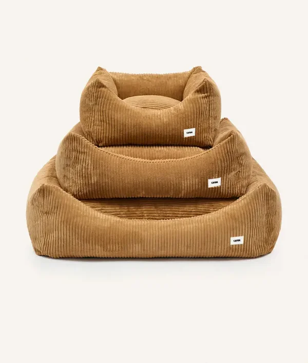 Comfortabel en duurzaam hondenmand met een afneembare, wasbare hoes van zachte pluche corduroystof, vervaardigd in Europa. Het bed is gevuld met gerecycled schuim, dat eenvoudig met de hand aangepast kan worden om de hoogte en ondersteuning af te stemmen op honden van alle formaten.